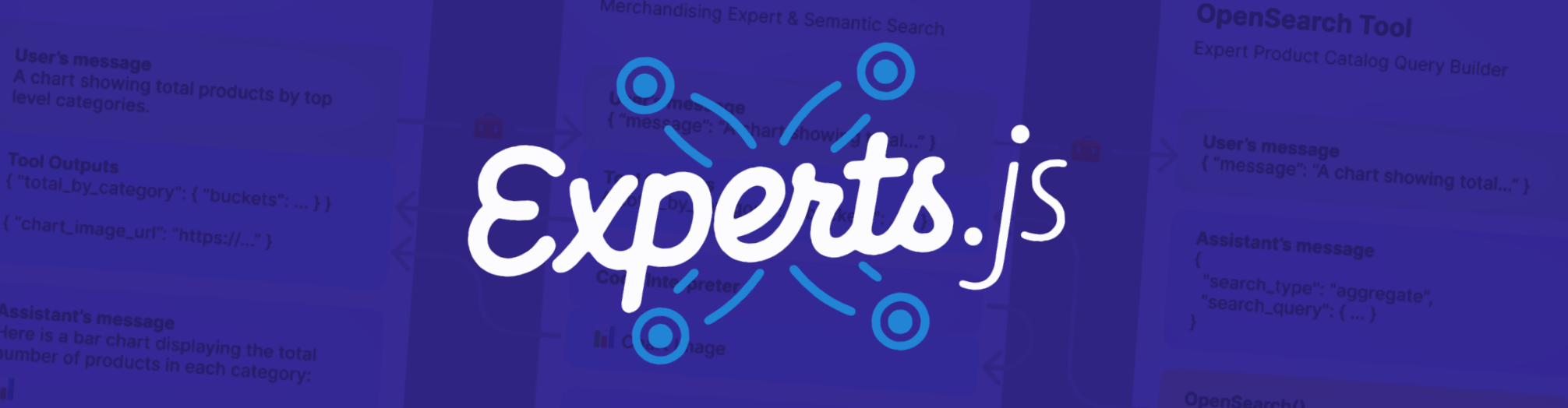 However, for our group, I wanted to explore a very real use case for Experts.js. Where a company assistant acts a main router for an entire panel of experts. This sales and router expert has one tool, a merchandising expert. This merchandising tool in turn has its own tool, one capable of searching an OpenSearch vector database. The idea here is that each Assistant owns its domain and context. Why would a company sales assistant need to know (and waste tokens) on how to perform amazing OpenSearch queries. Likewise, being an amazing accounts or order assistant requires context and tools that would likely confuse another.
