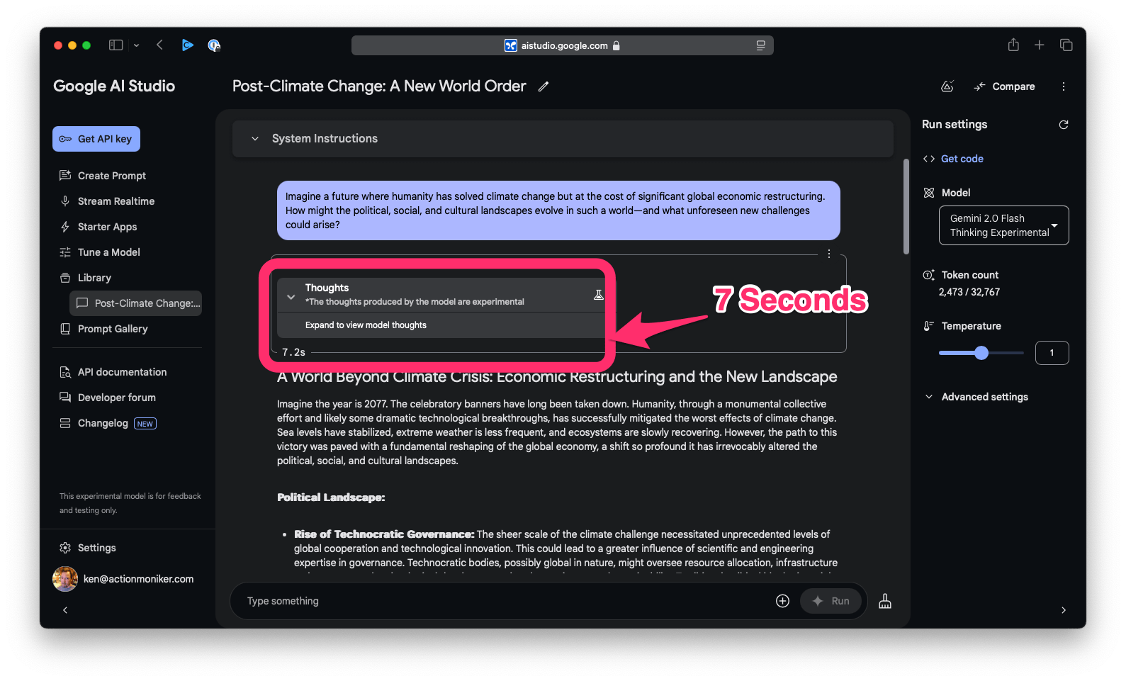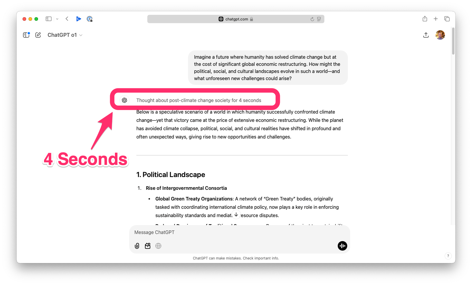 You can see test-time compute in action when you use ChatGPT or AI Studio. There's no fixed rule for how long a model might think or why. I tested both models with the "ultimate question" about life, the universe, and everything 😜 - both came back pretty quickly with an answer. So I used this prompt instead: